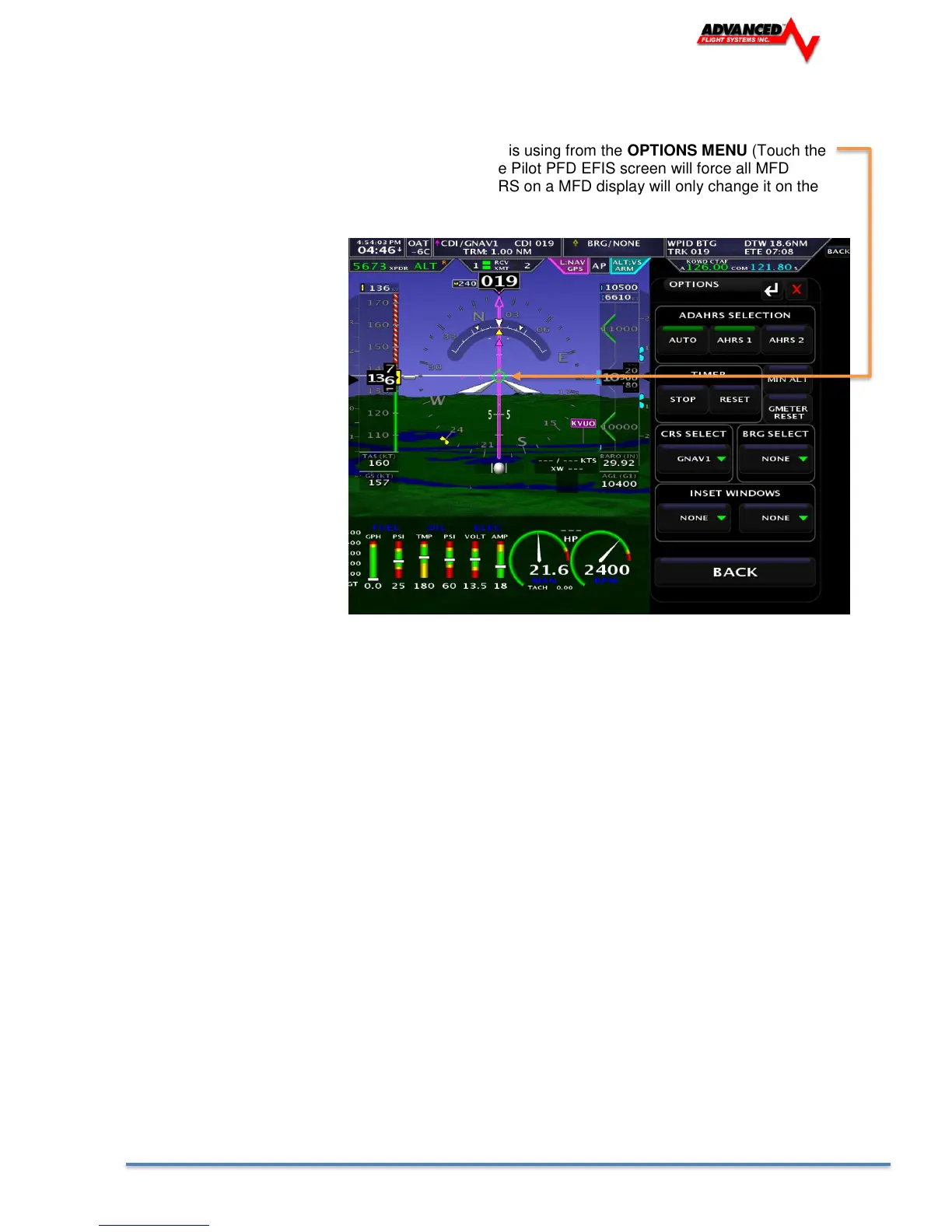 the screen. You can select the ADAHRS that the system is using from the OPTIONS MENU (Touch the