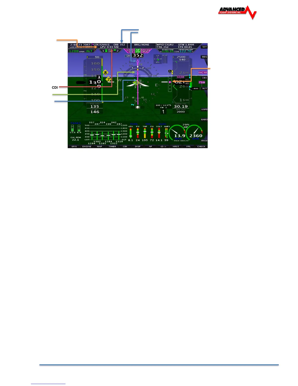BTW displays the direct bearing to the active GPS waypoint and will be displayed on the HSI as a yellow line with two