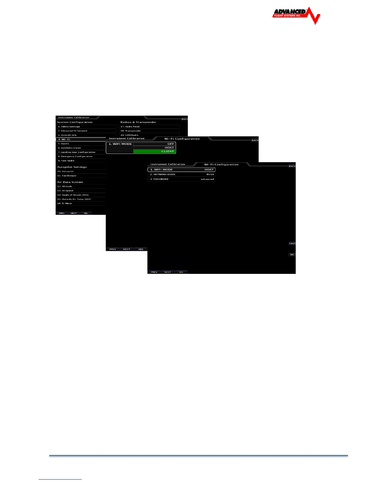 Configuration of the AF-5000 Wi-Fi system only needs to be done on one EFIS display that has the Wi-Fi module