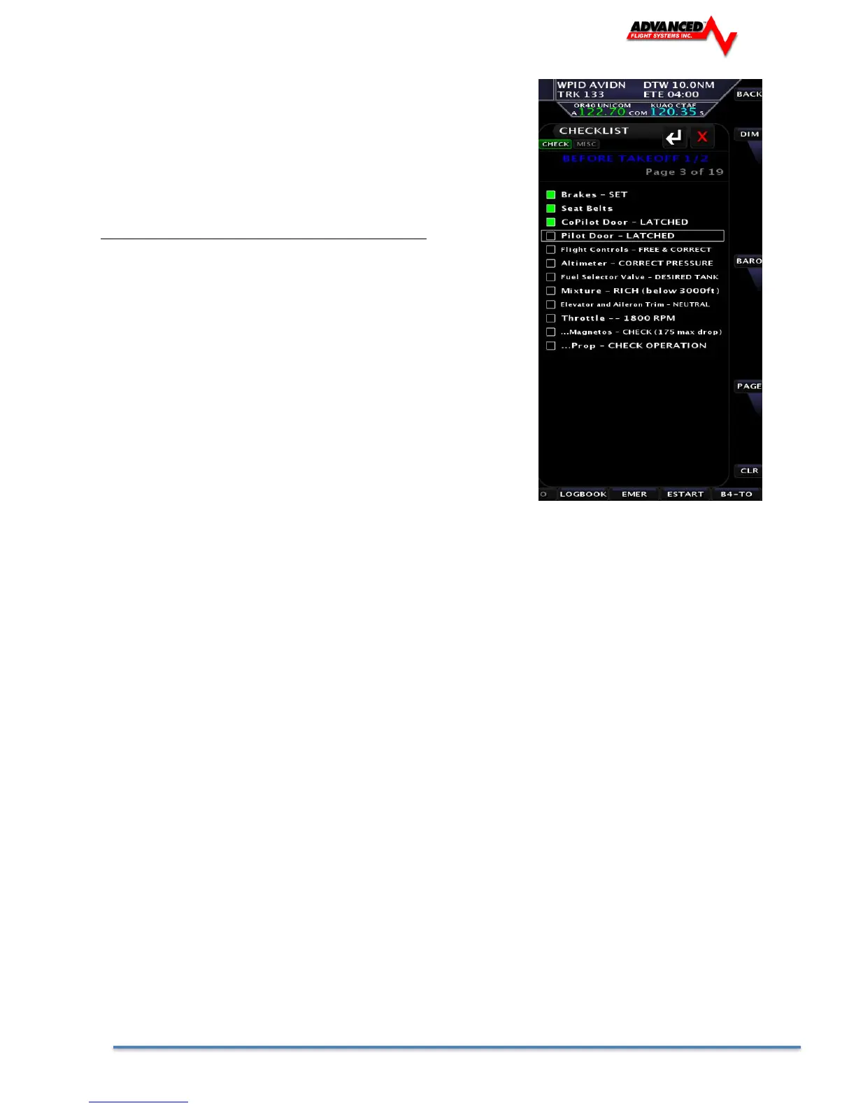 Advanced Flight Systems AF-5600 - EFIS Checklists Management