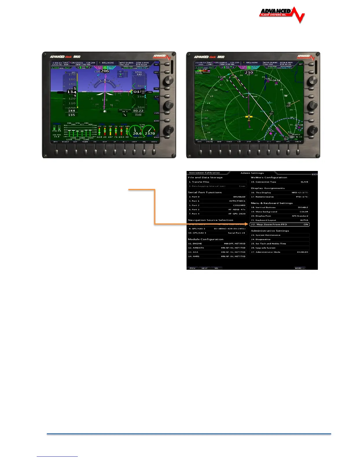 control from the PFD display: SET > CAL > ADMIN