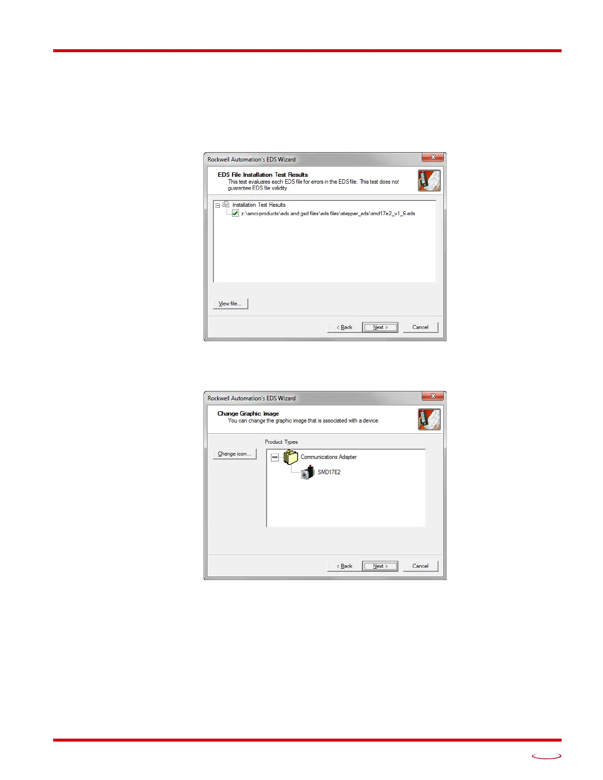 installation test for the EDS file. You should see a green check mark next to the file name indicating that