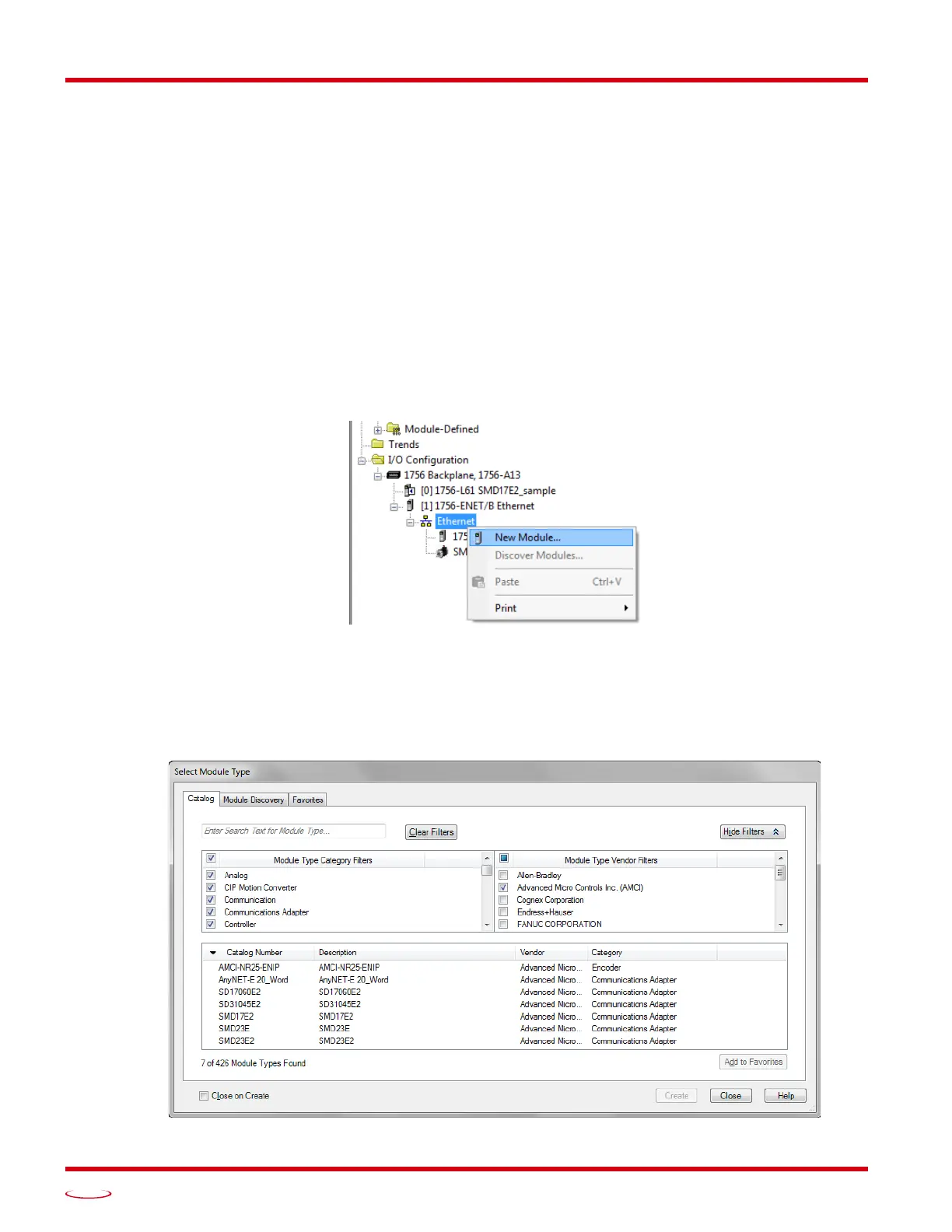 2) In the resulting Select Module Type screen, select “Advanced Micro Controls In. (AMCI)” in the Vendor