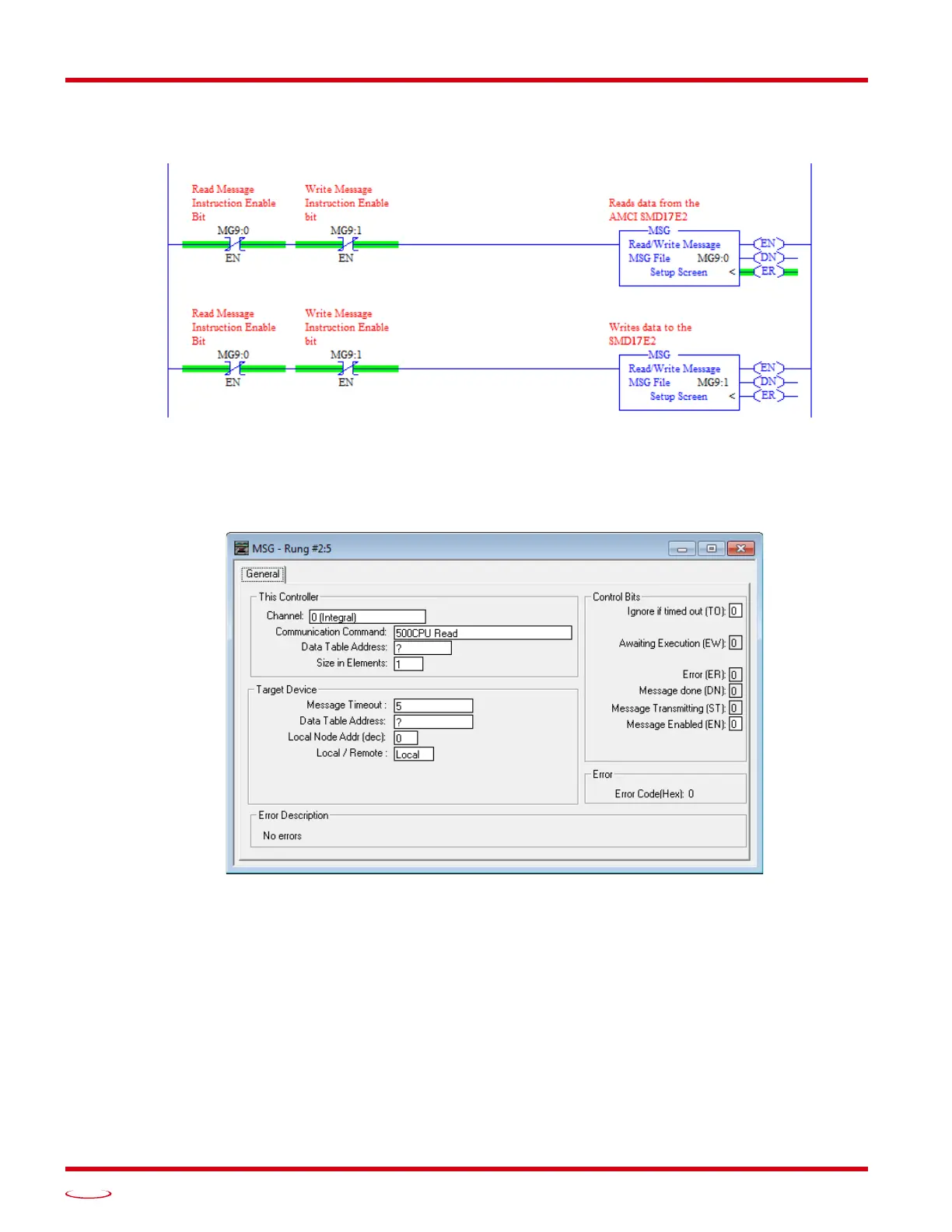 5.3 Add the Message Instructions to your Ladder Logic