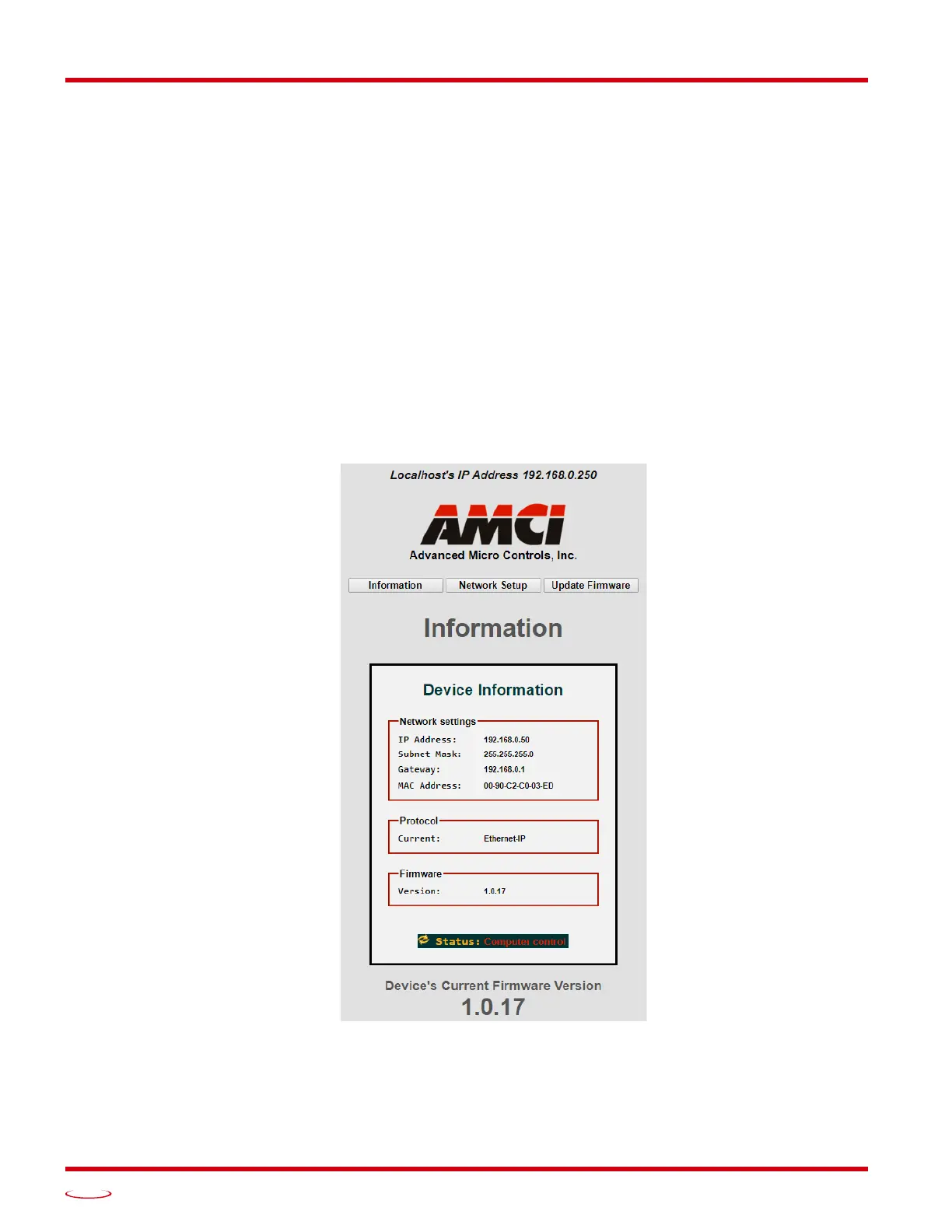 ent IP address of the SMD17E2 into the address bar. The default address is 192.168.0.50. The unit will