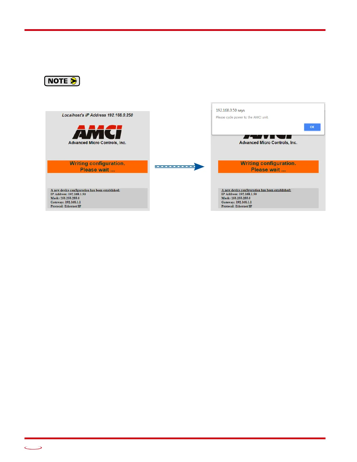 6) Once instructed to, cycle power to the unit. You can now enter the new IP address into the address bar of