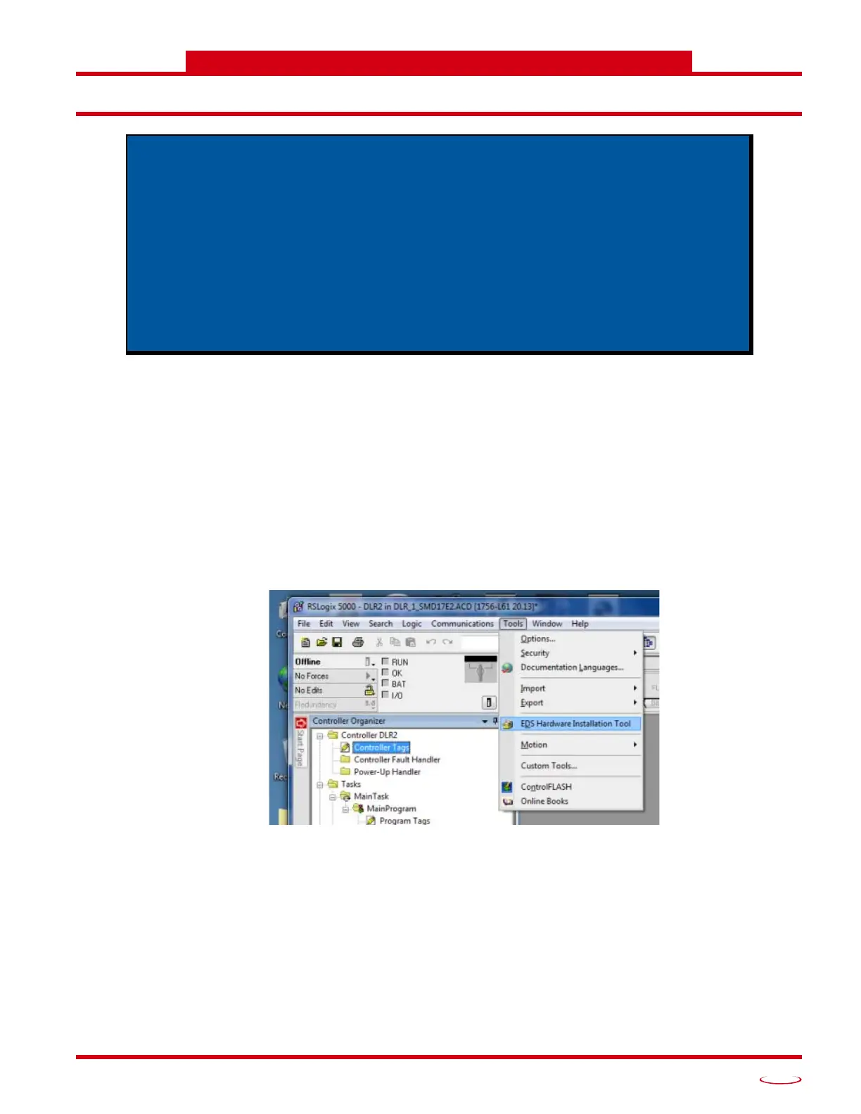 1) Once Studio 5000 is running, in the menu bar select Tools EDS Hardware Installation Tool. This will open