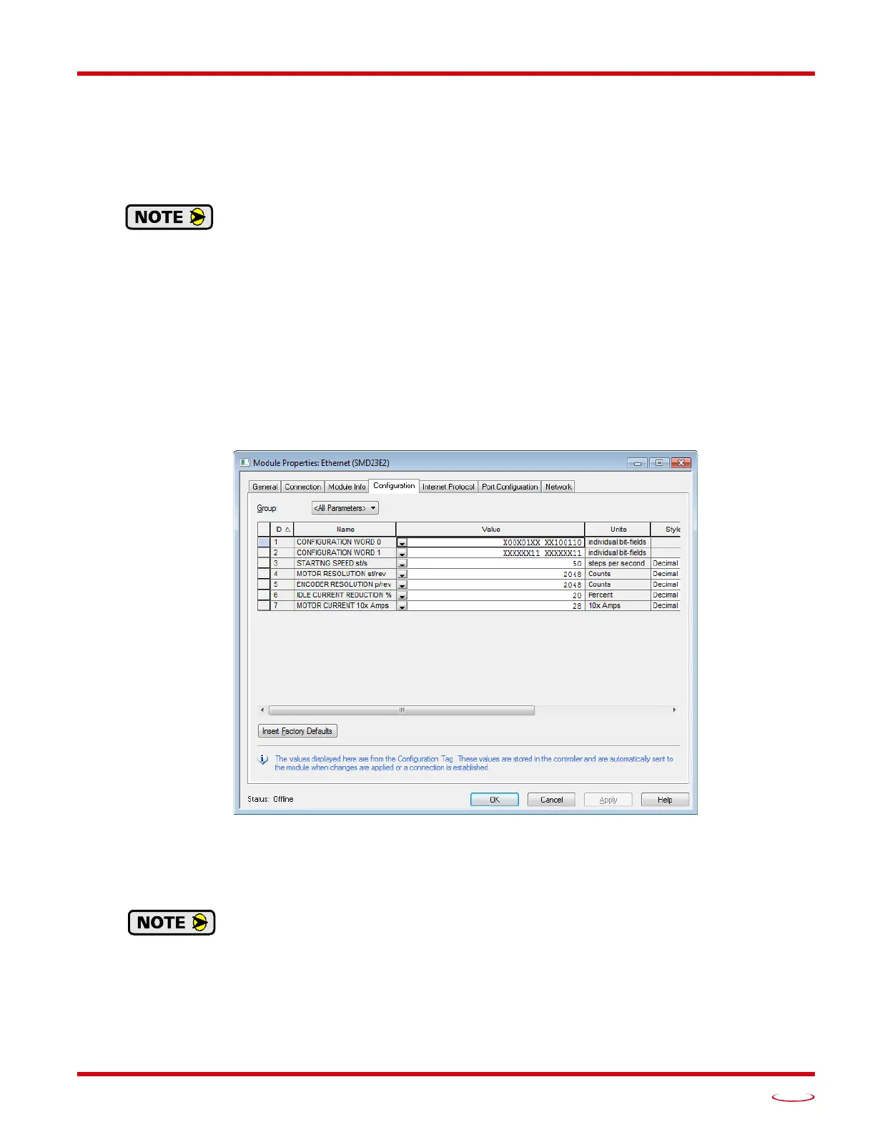 The Configuration tab is used to define the configuration data that is written down to the SMD23E2 or