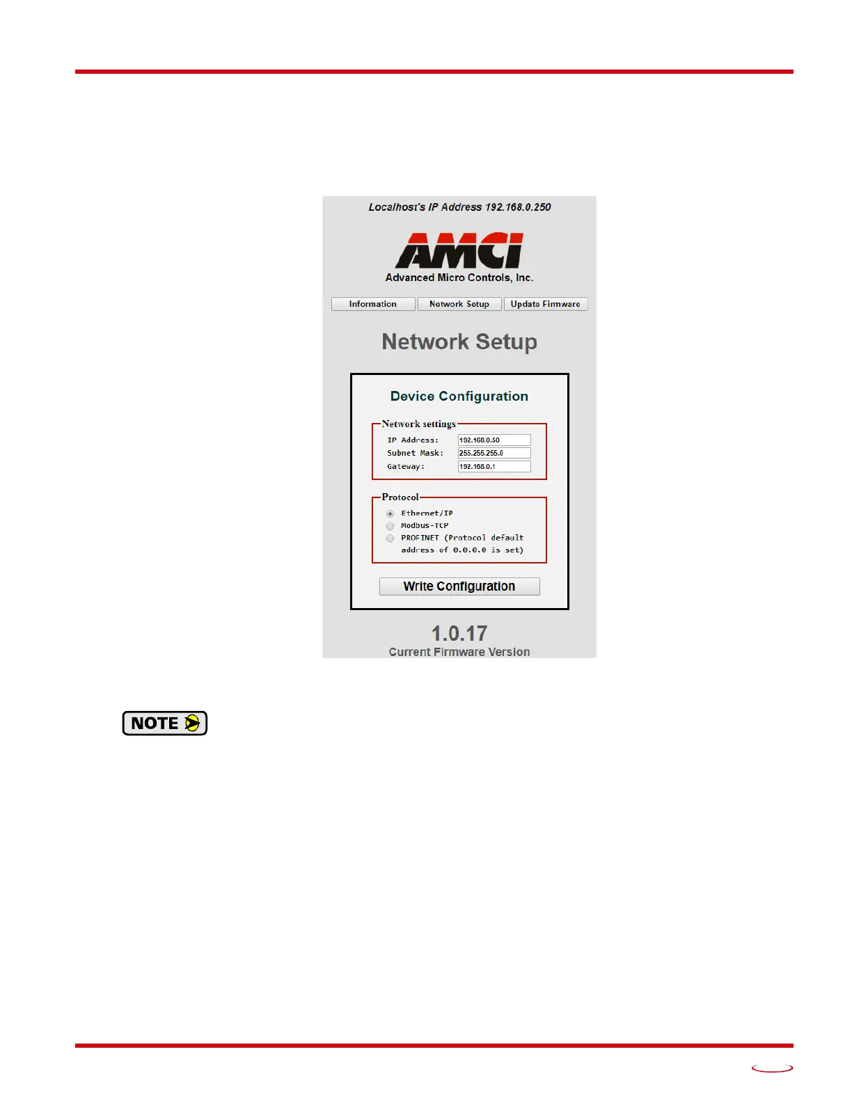 have a required value for it, AMCI suggests setting the Default Gateway to the IP address of
