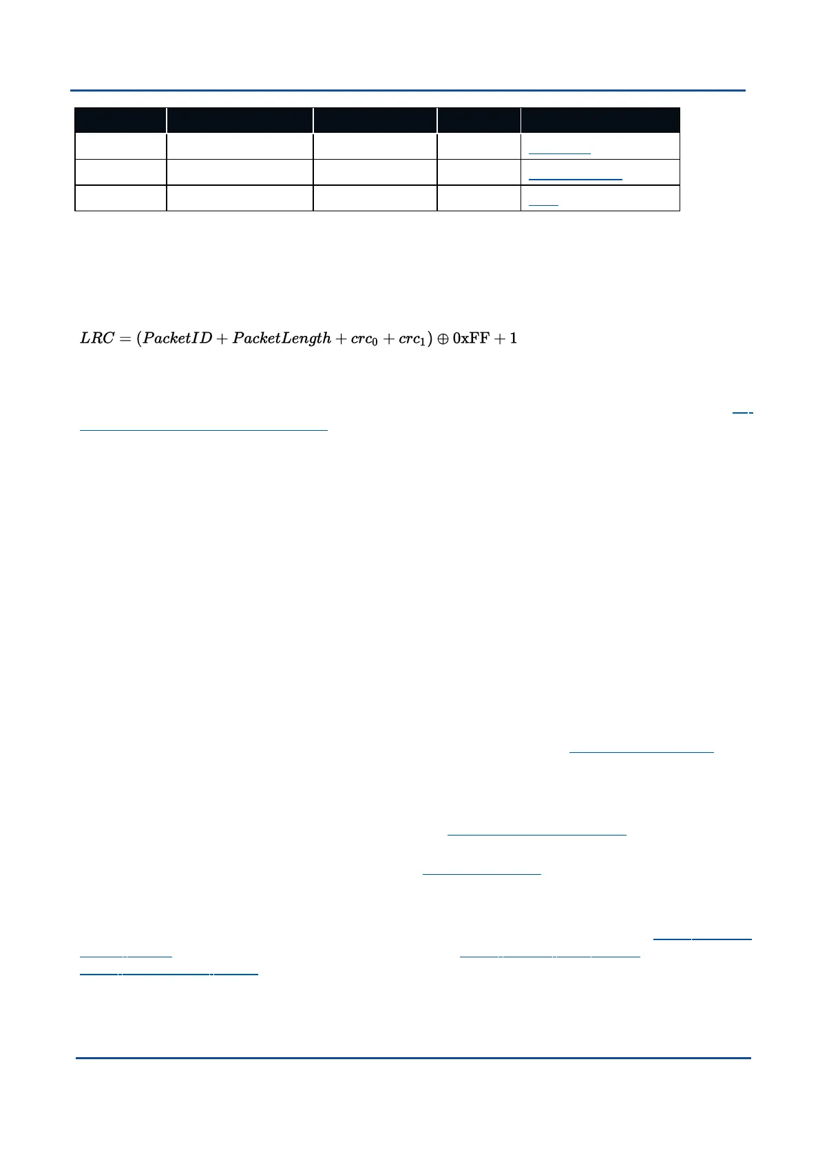 below are provided in the LRC field of the packet header. The LRC can be found using the following: