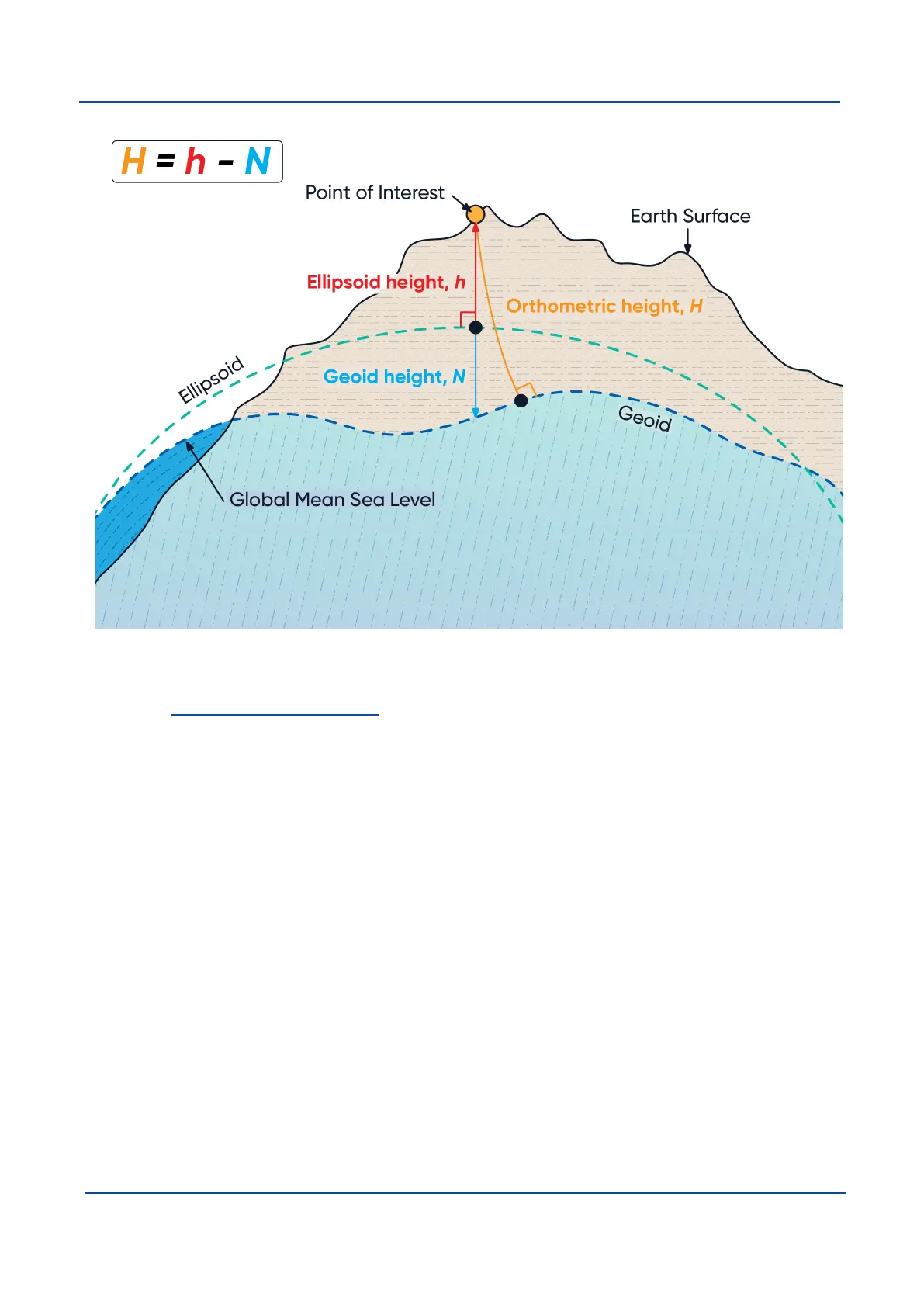 Figure 82: Orthometric, ellipsoid and geoid height diagram