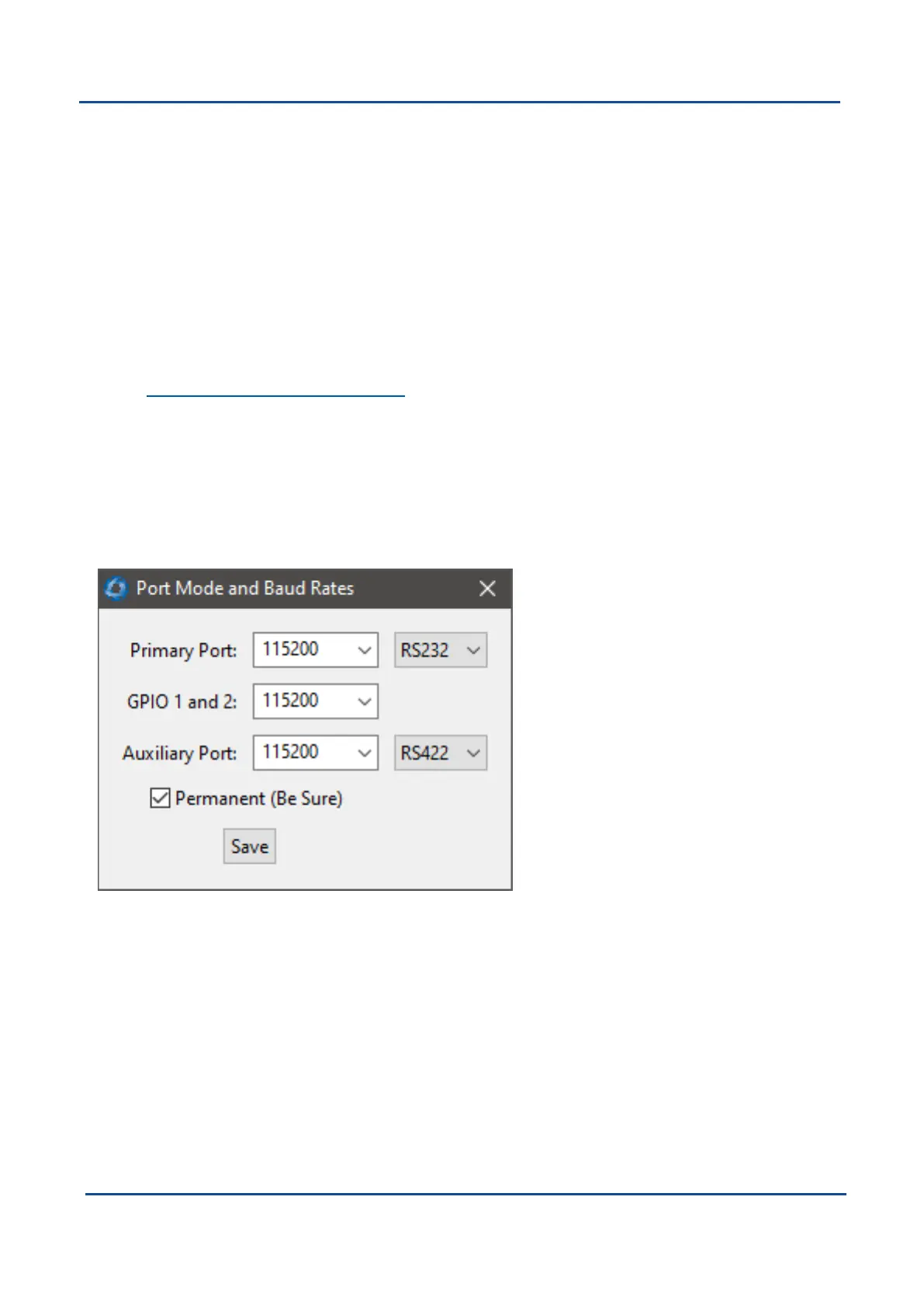 It is recommended to test the baud rate first without selecting the Permanent box. This way, if it is not possible