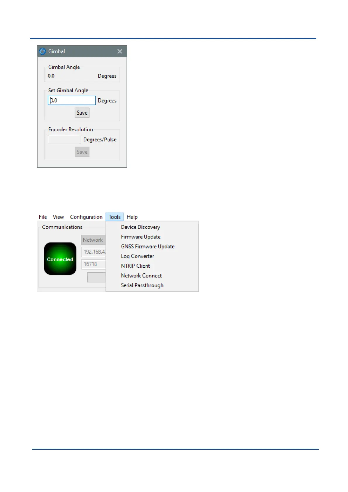 Figure 66: Boreas Manager Gimbal Dialogue