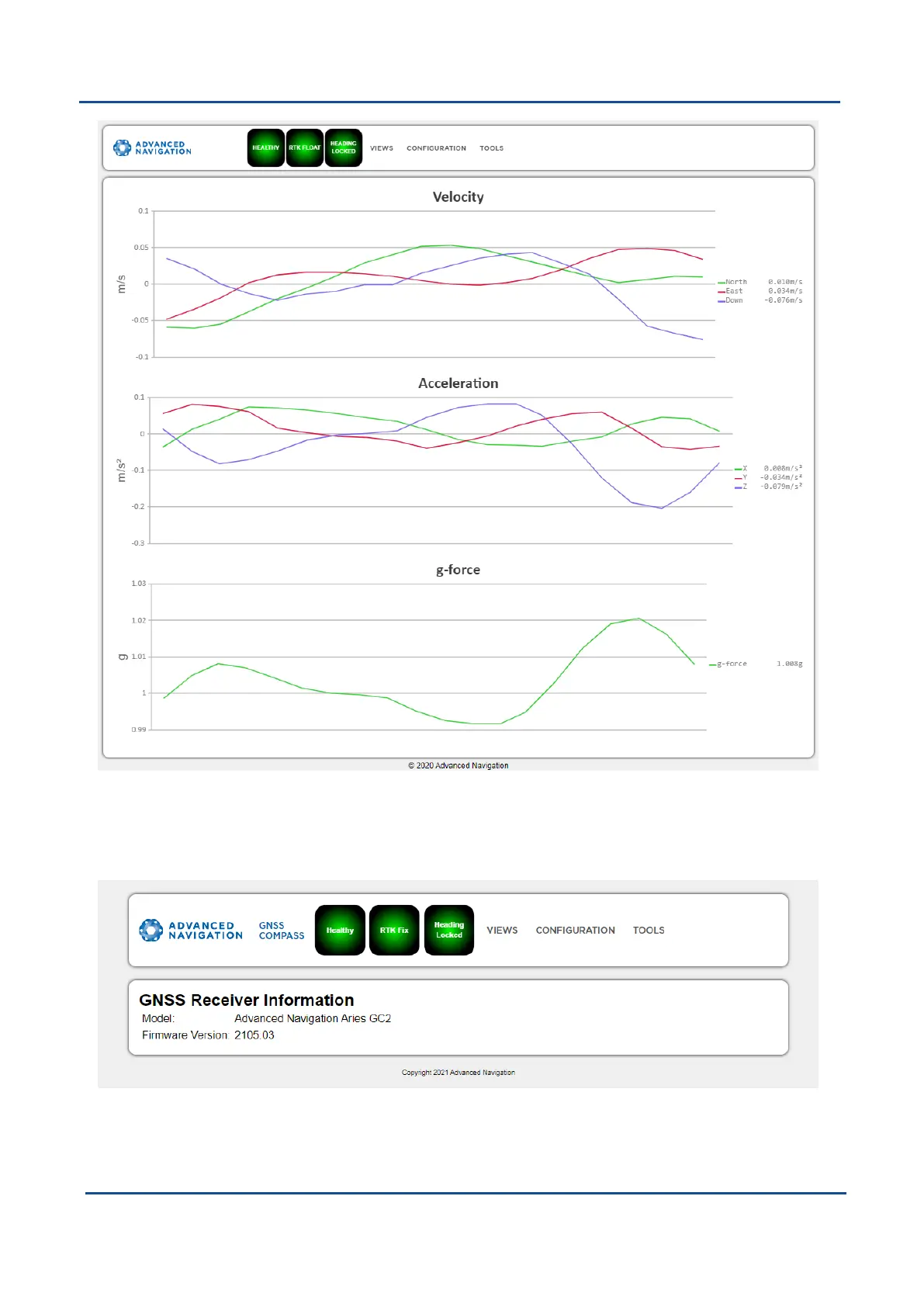 Figure 25: GNSS Compass Web UI Velocity and Acceleration Page