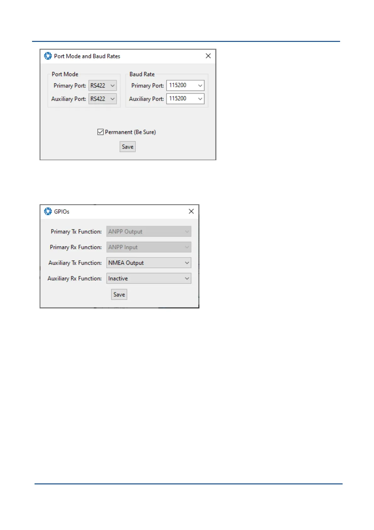 Figure 45: GNSS Compass Manager GPIO configuration Dialogue