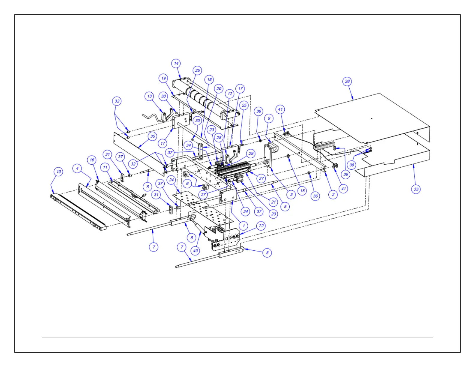 *Note: Items 5, 7, and 21 will vary depending upon the Pass-Through size of the Bagger. Please note this when ordering parts from the Bill of