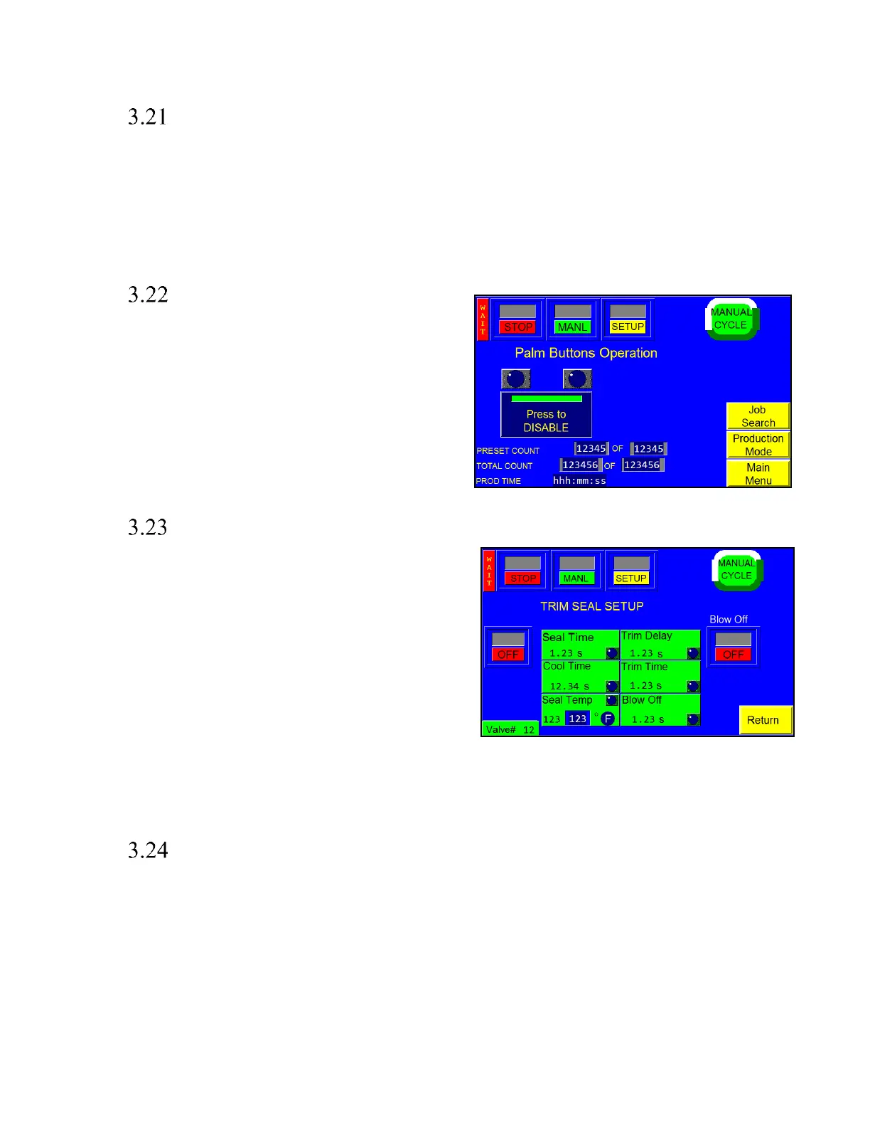 operation of the Trim Seal option. Seal Time, Seal Temp,