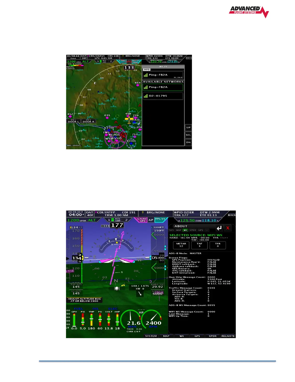You can verify that the Wi-Fi ADS-B unit is working from the: CHECK > ABOUT > WX button