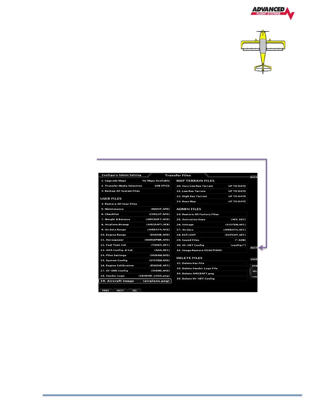 3. Select the Aircraft Image menu from the Transfer Files menu.