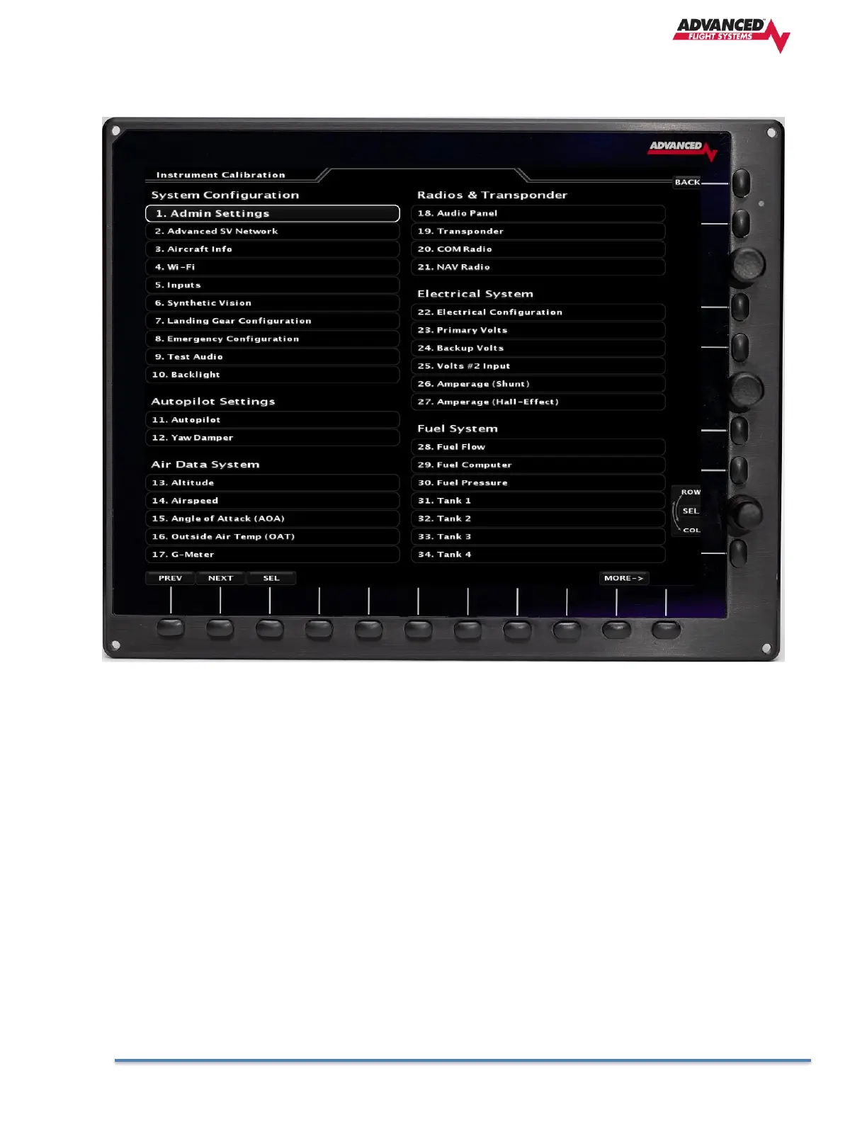 All the EFIS configuration and setup is done from the Instrument Calibration menu. From the normal EFIS