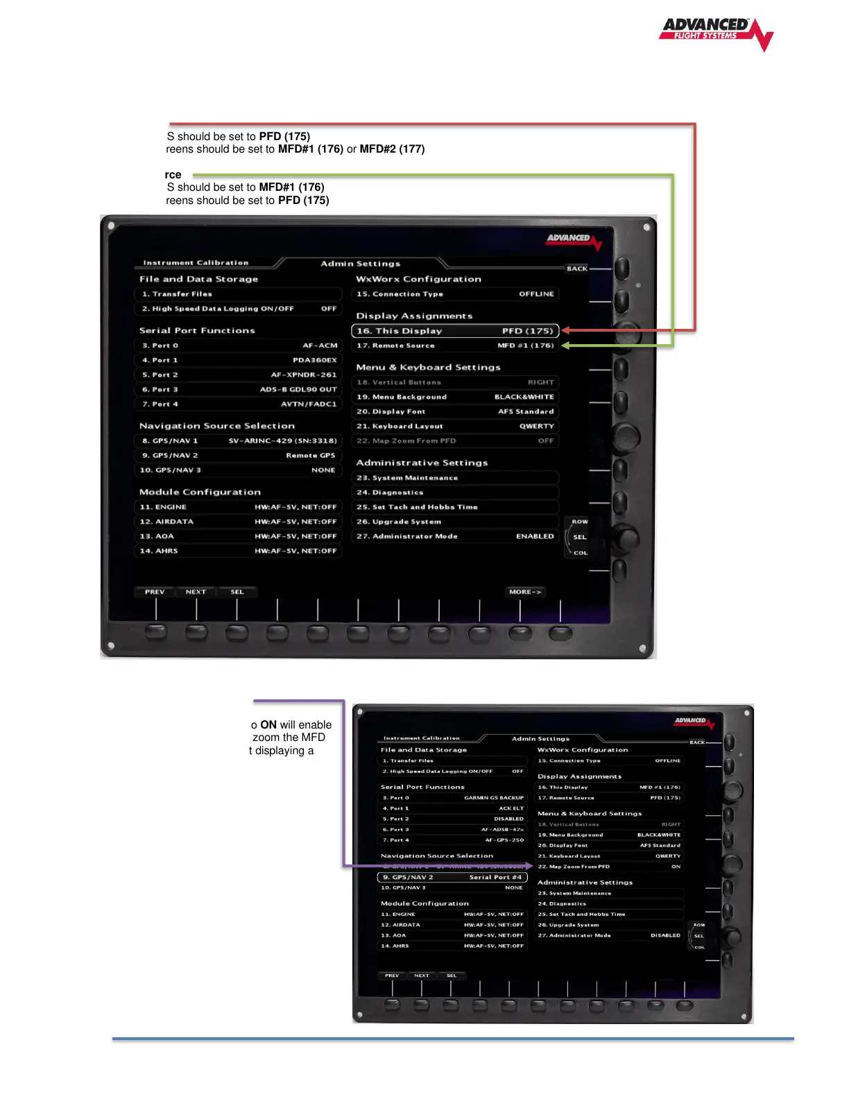 Each AF-6600 / AF-5000 EFIS in the aircraft must have a unique Display Address (Ethernet IP Address).
