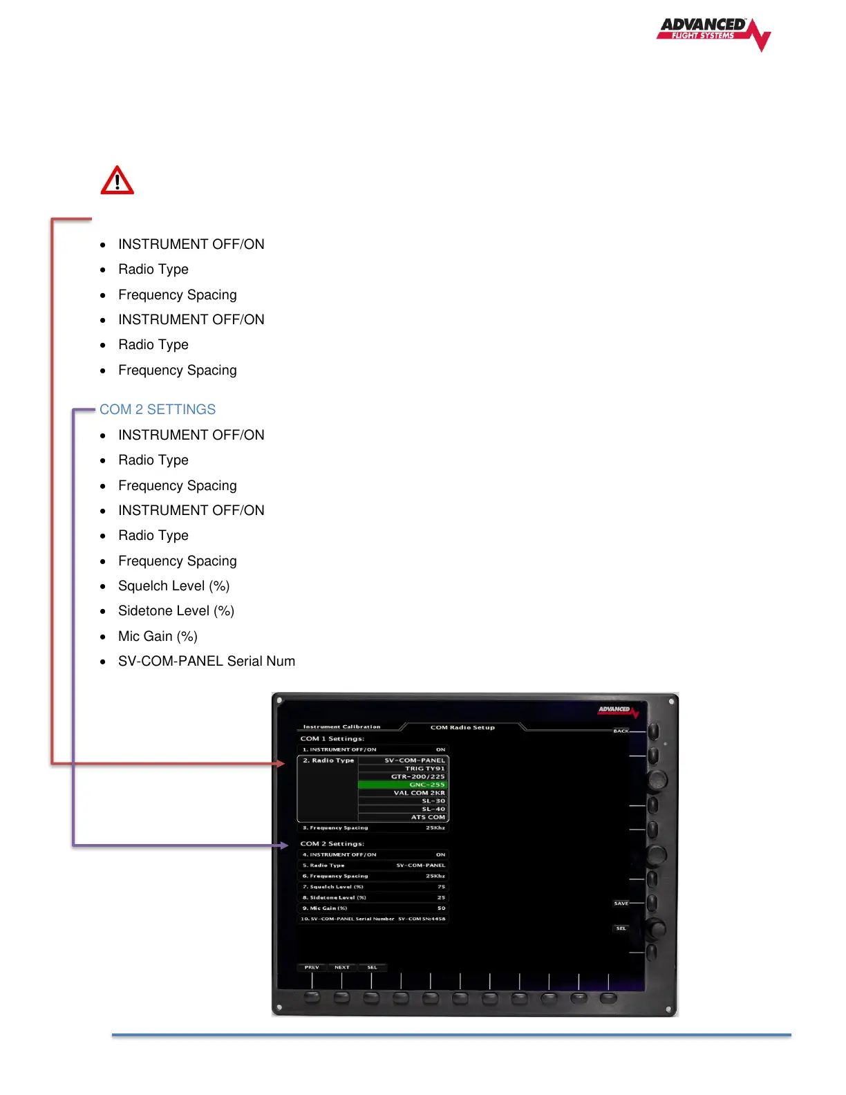 remote radio tuning. The Dynon SV-COM interfaces with the EFIS on the SV-NETWORK, the other COM