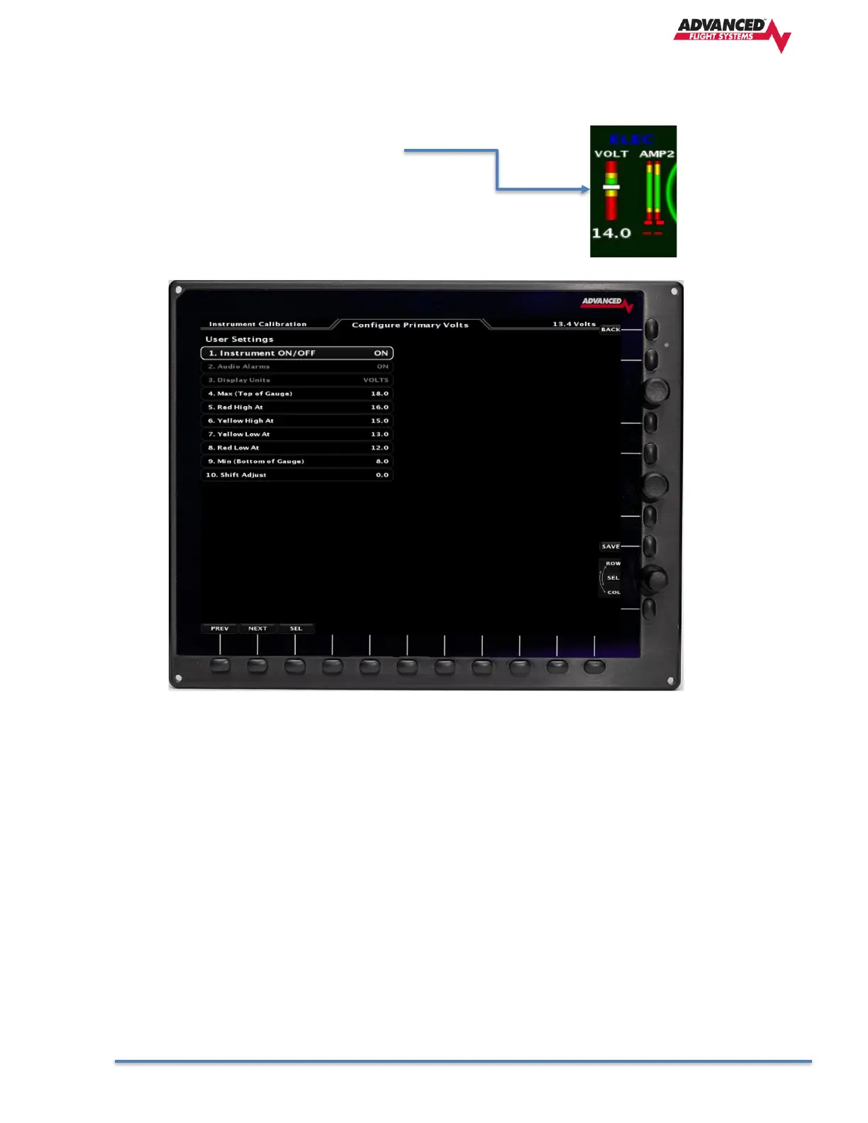The Primary Volts is the measured voltage that is powering the EFIS,