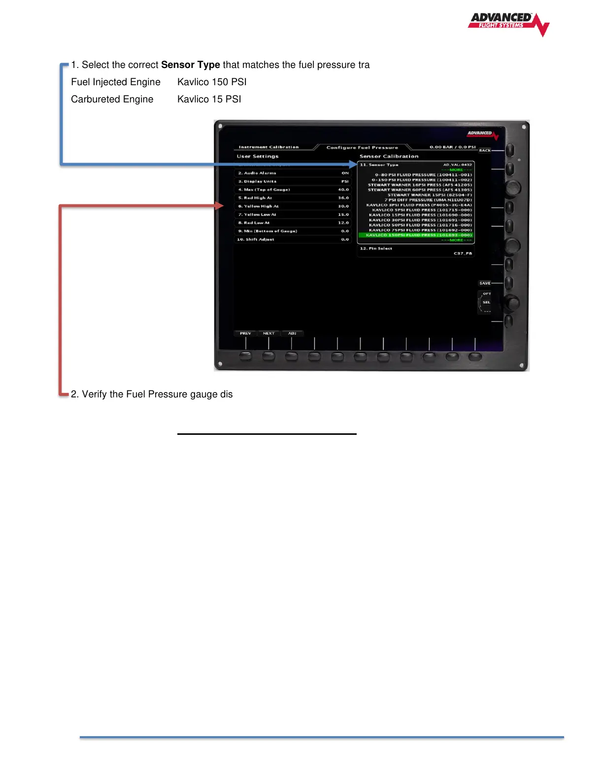 2. Verify the Fuel Pressure gauge display ranges match your engine manufacturers recommendations.