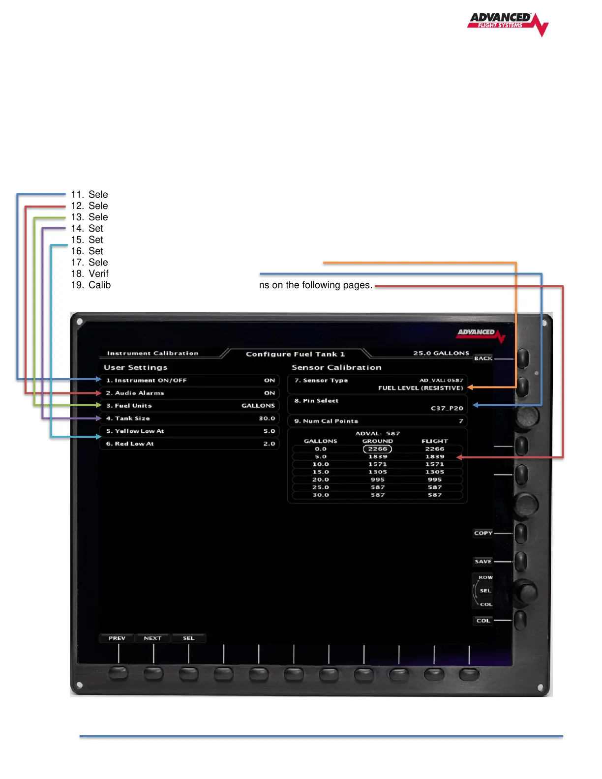 11. Select Instrument ON or OFF All the unused fuel tank gauges should be configured to OFF