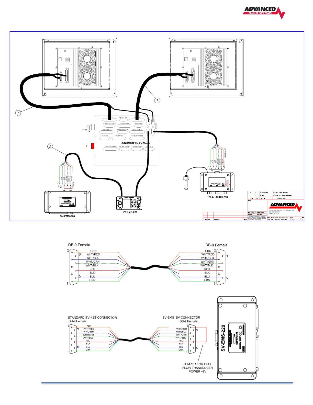 Advanced AF-6600 - 2.2 SV-Network Wiring to AF-6600; AF-5000 EFIS with ACM; 2.3 SV-Network Harness Connections; 2.4 SV-Network SV-EMS-220 Harness Connections