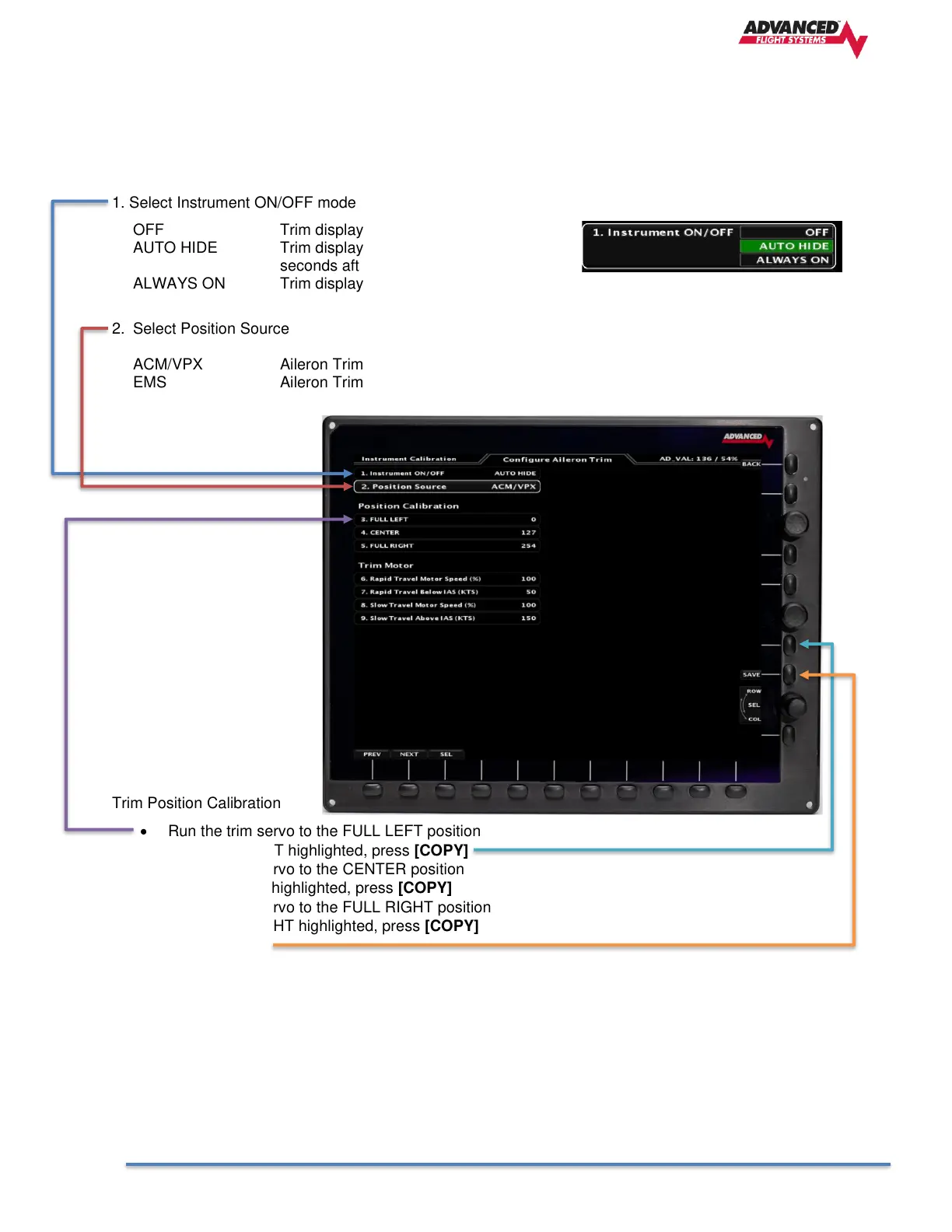 SV-EMS input or from an ACM/VPX unit. The EFIS Trim display can be configured to be always on the