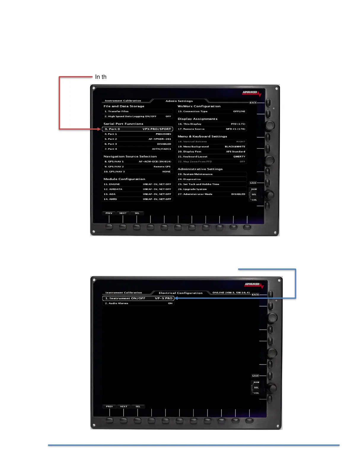 VPX serial port to an EFIS serial port you need to set the EFIS serial port function to VPX from the EFIS