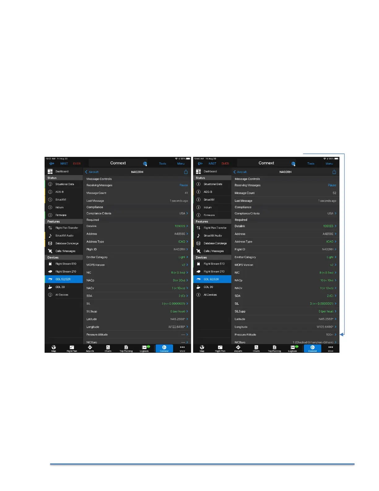 Garmin Pilot Screen Captures with a GDL-52 Portable ADS-B receiver