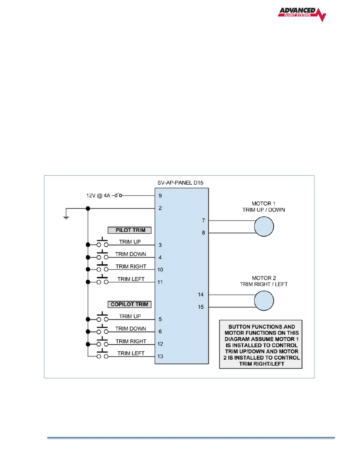 Pitch trim motor and/or a Roll trim motor. If the trim motor outputs are not used, Power (Pin 9) and