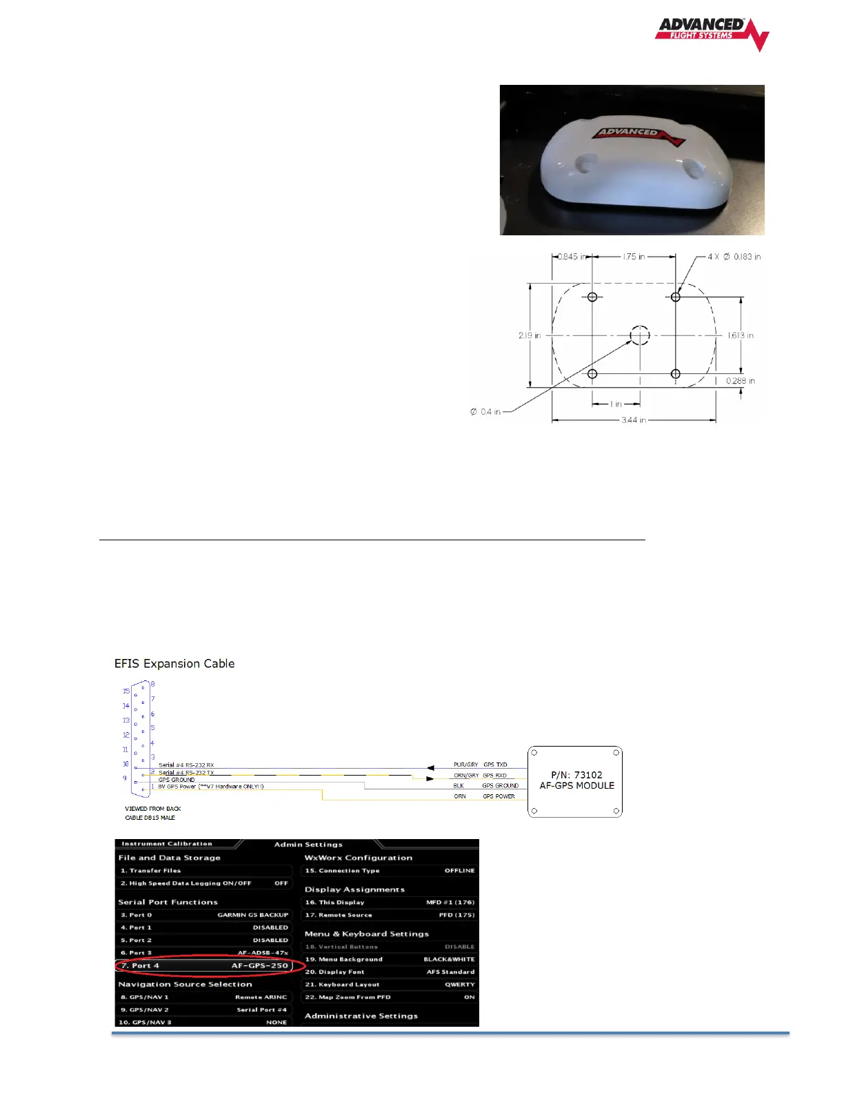The GPS module uses a dedicated power pin on AF-6600 or AF-5000 EFIS Expansion 15 pin connector.