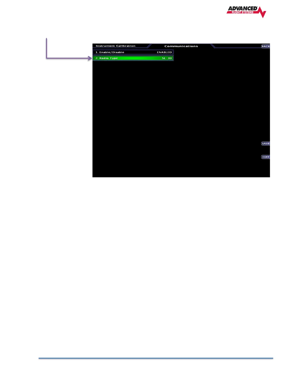 remote radio you will need select the correct radio from the EFIS Communications setup menu and ENABLE