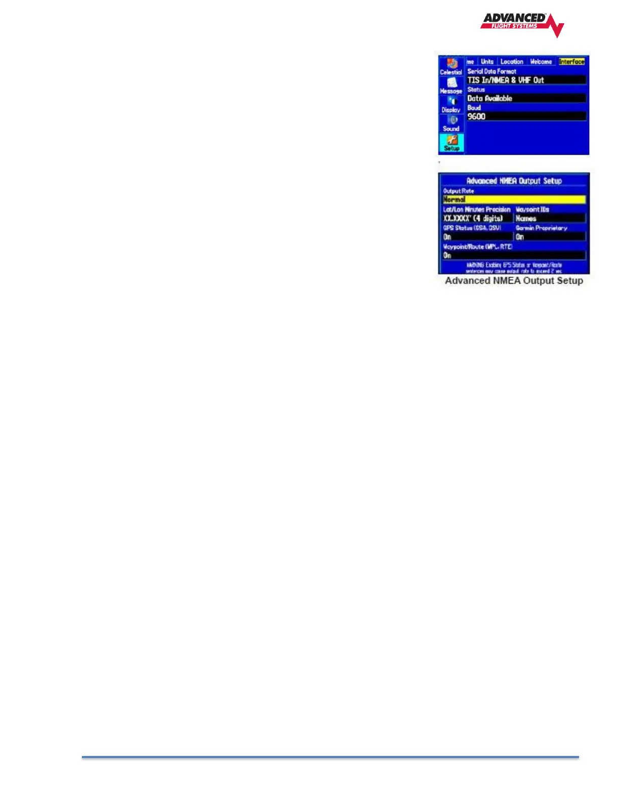 f. Press MENU to open the options menu. Select Advanced NMEA