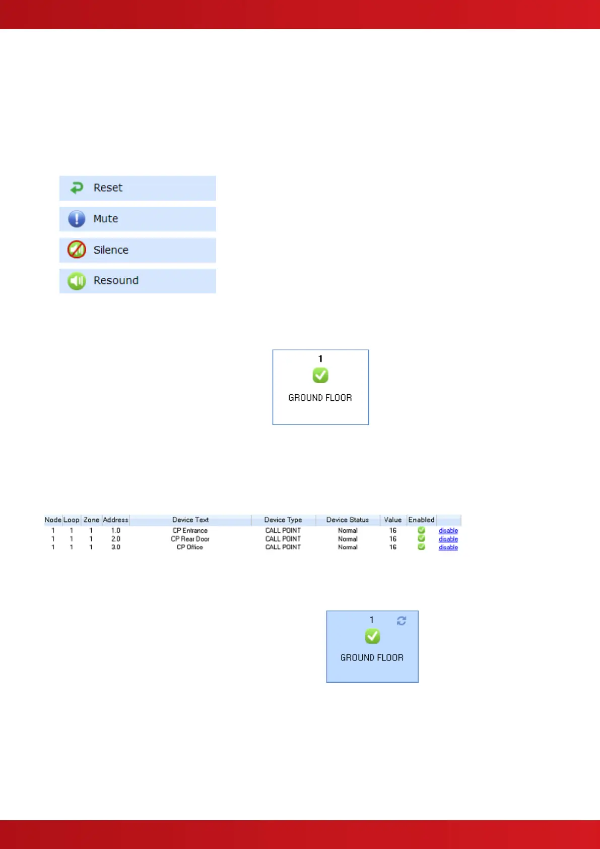 The second section contains a number of buttons similar to the buttons found on a fire panel. These buttons are