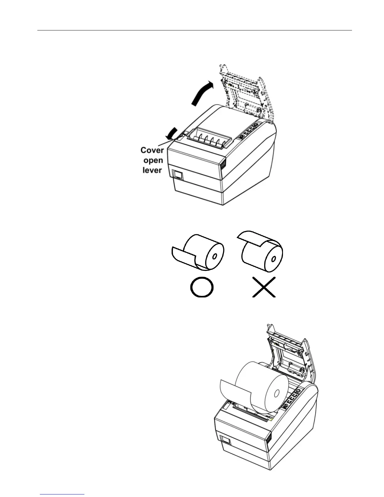 (3) Put the paper roll into paper trough and pull out the leading edge of the