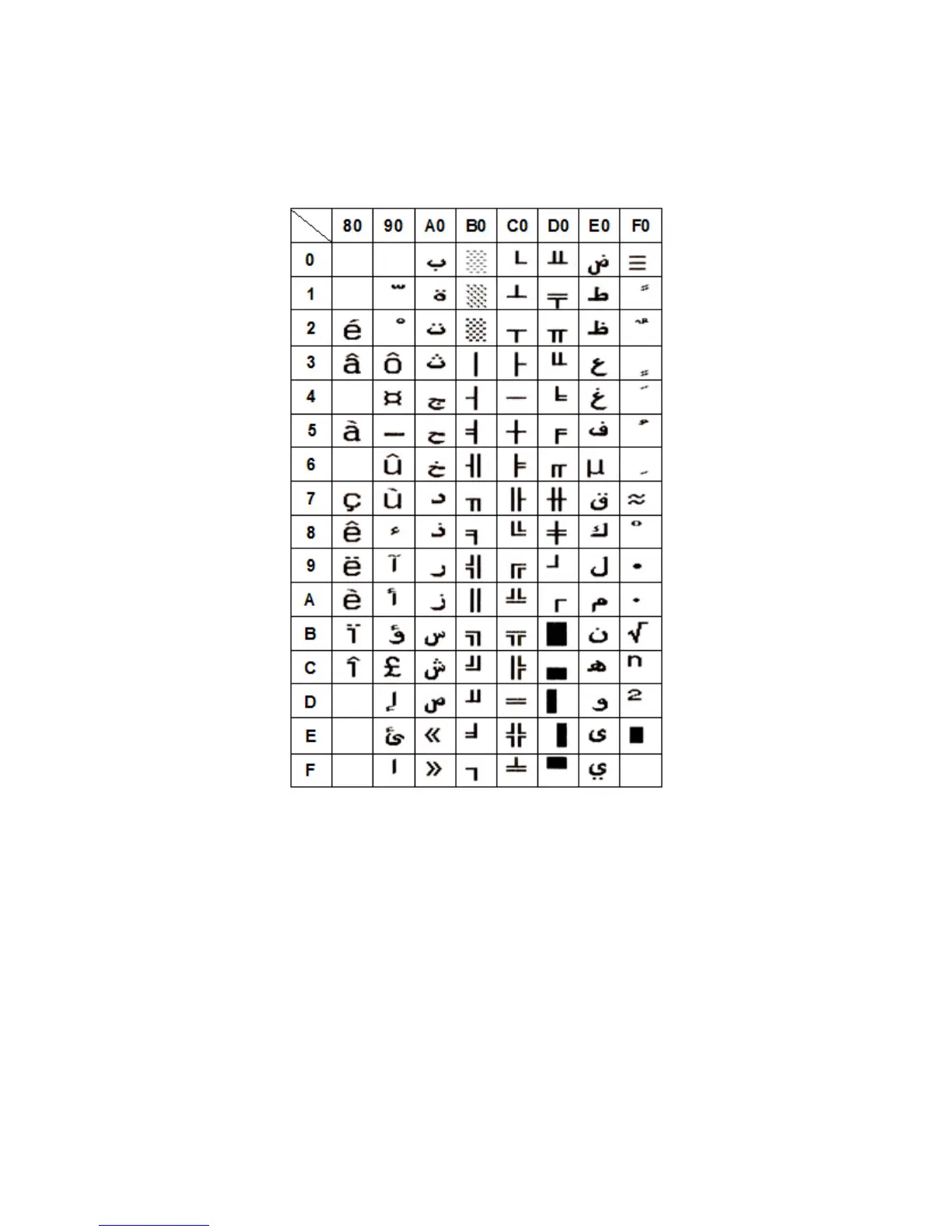 AdvanPOS WP-T810 - Code Page 32: PC720 (Arabic)