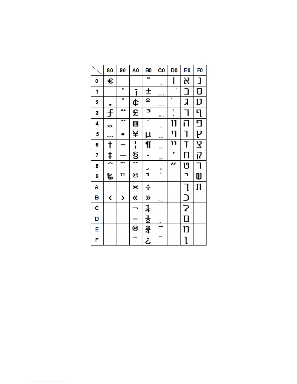 AdvanPOS WP-T810 - Code Page 49: WPC1255 (Hebrew)