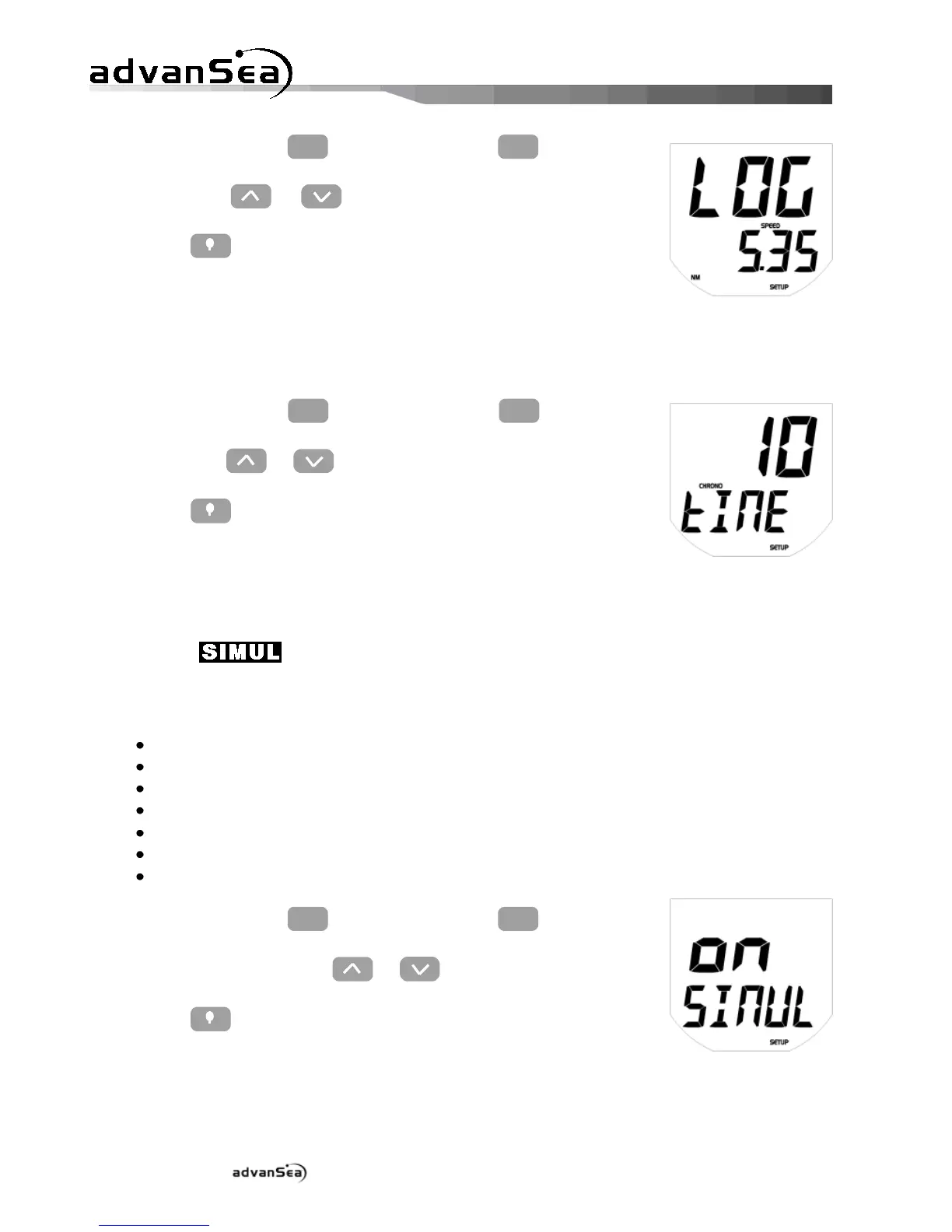 la page de réglage du loch « LOG », puis ajuster la valeur désirée