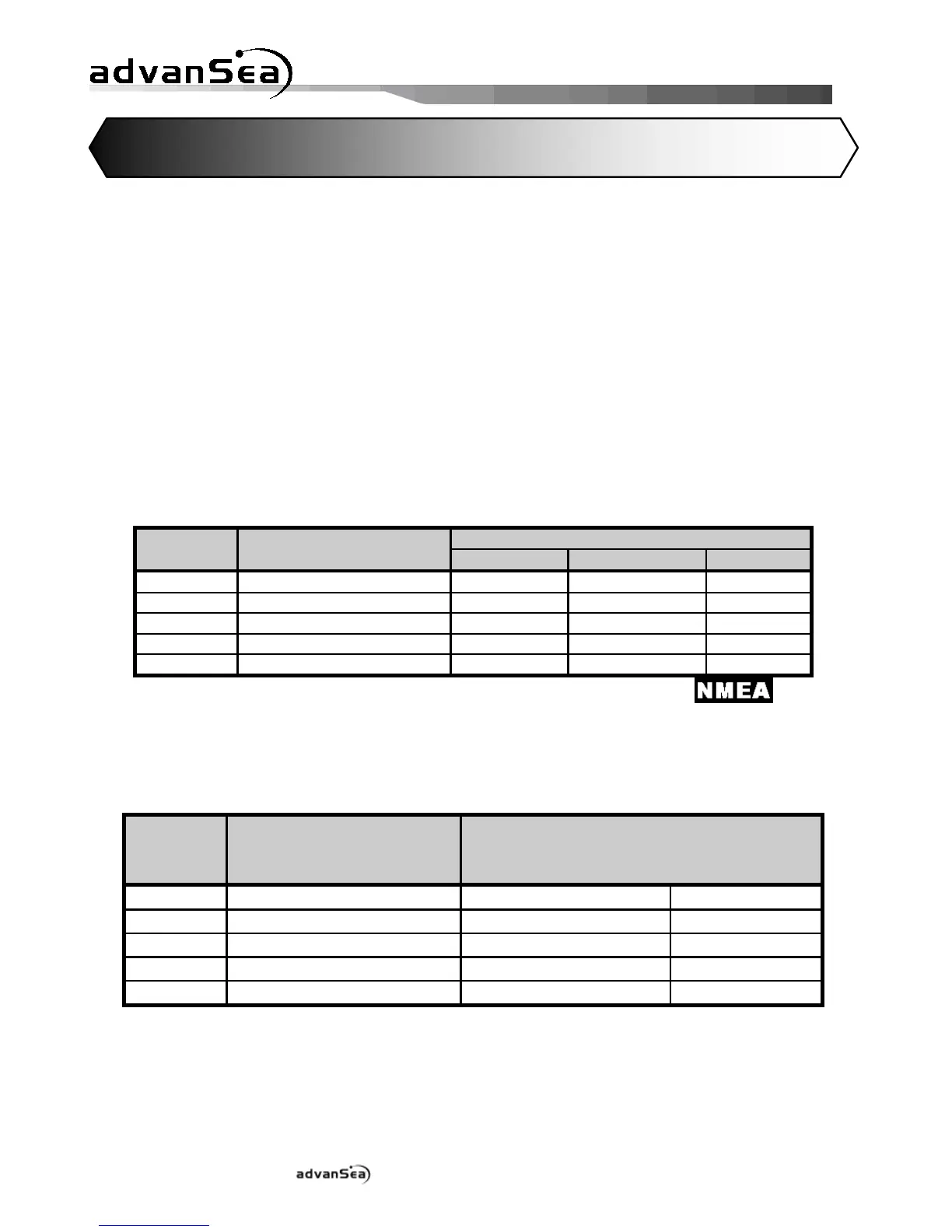 Die NMEA0183 Schnittstelle kann 5 der in der Tabelle aufgeführten Datensequenzen simultan