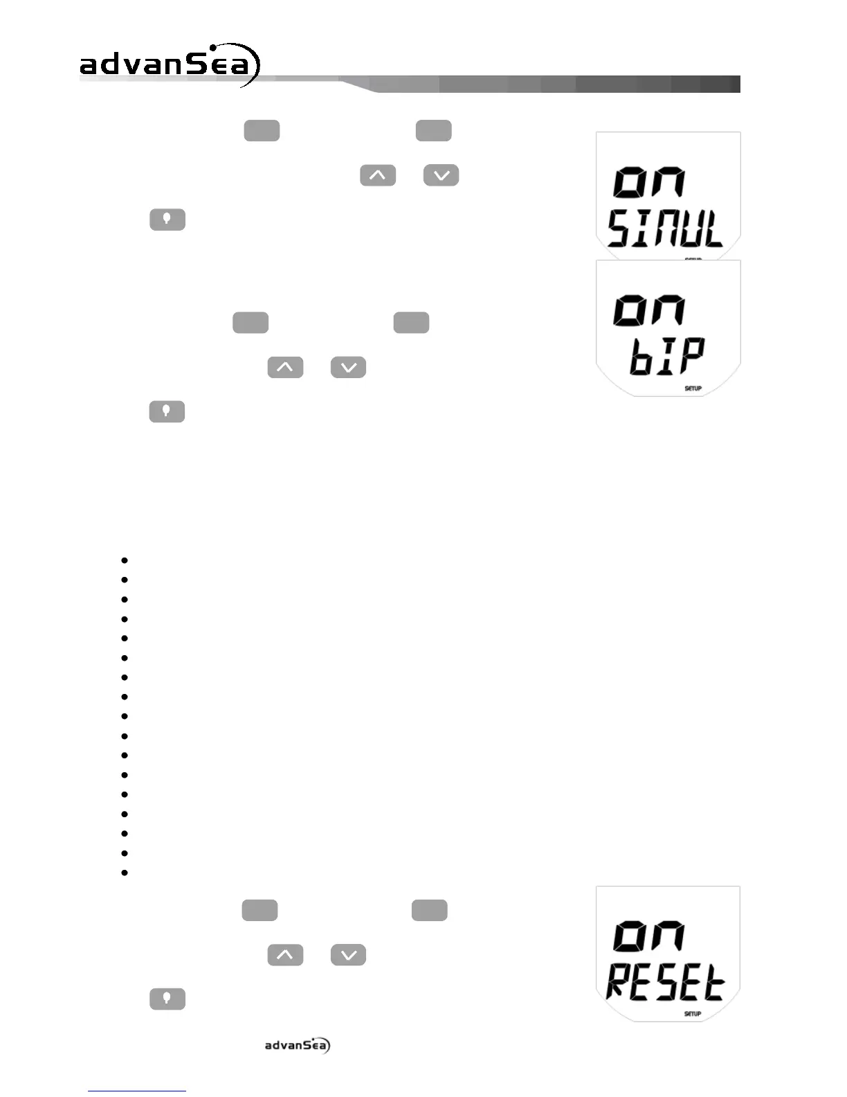 Druk op om de setup modus te verlaten, of automatisch na 10 seconden.