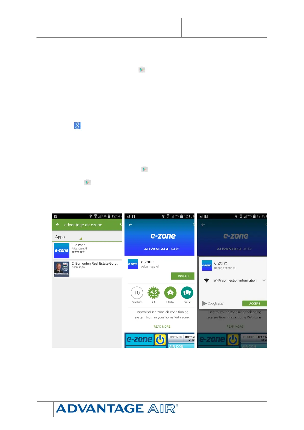 2. Search for “Advantage Air e-zone”