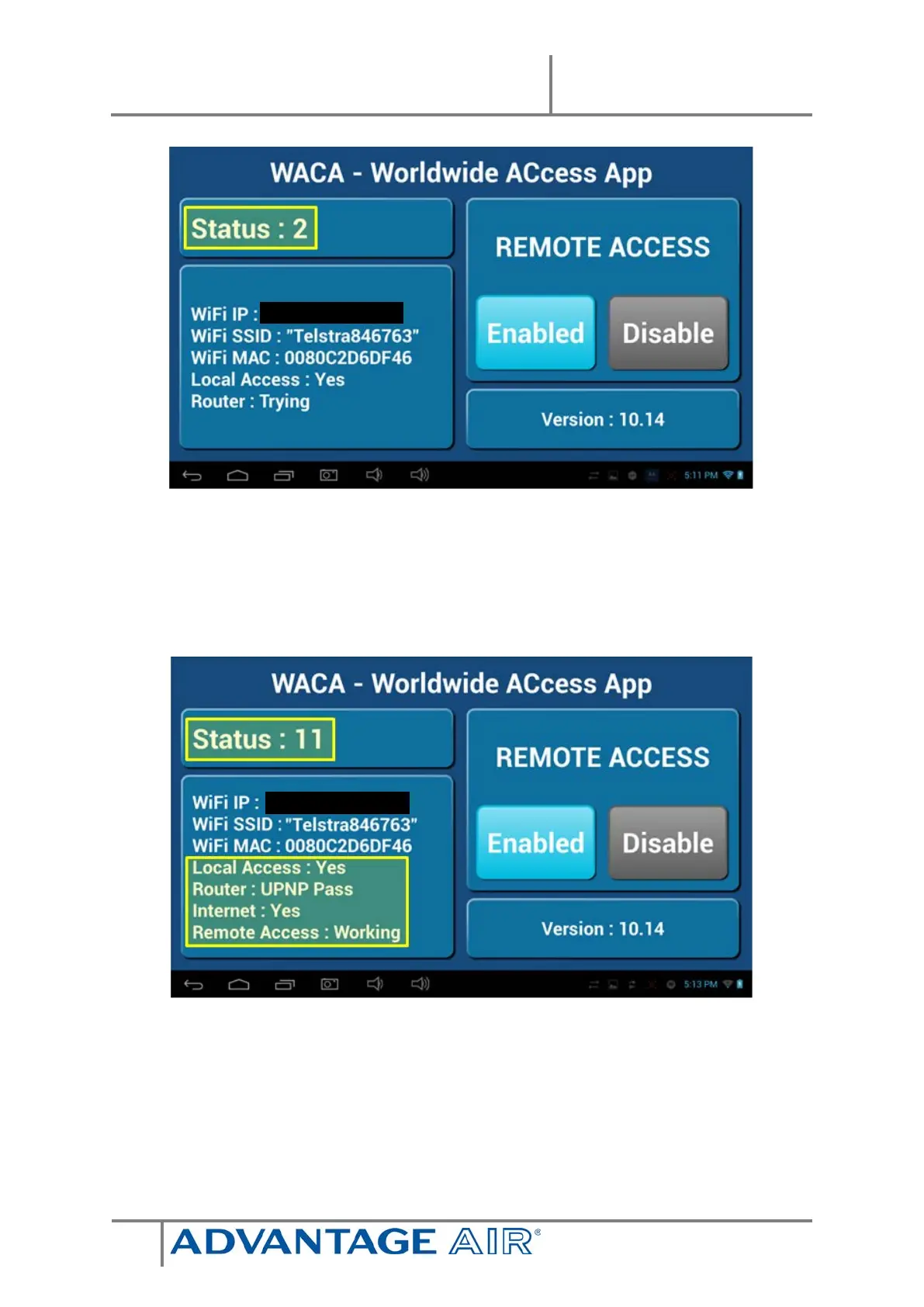 7. When STATUS: 5, 8 or 11 are displayed remote access has been