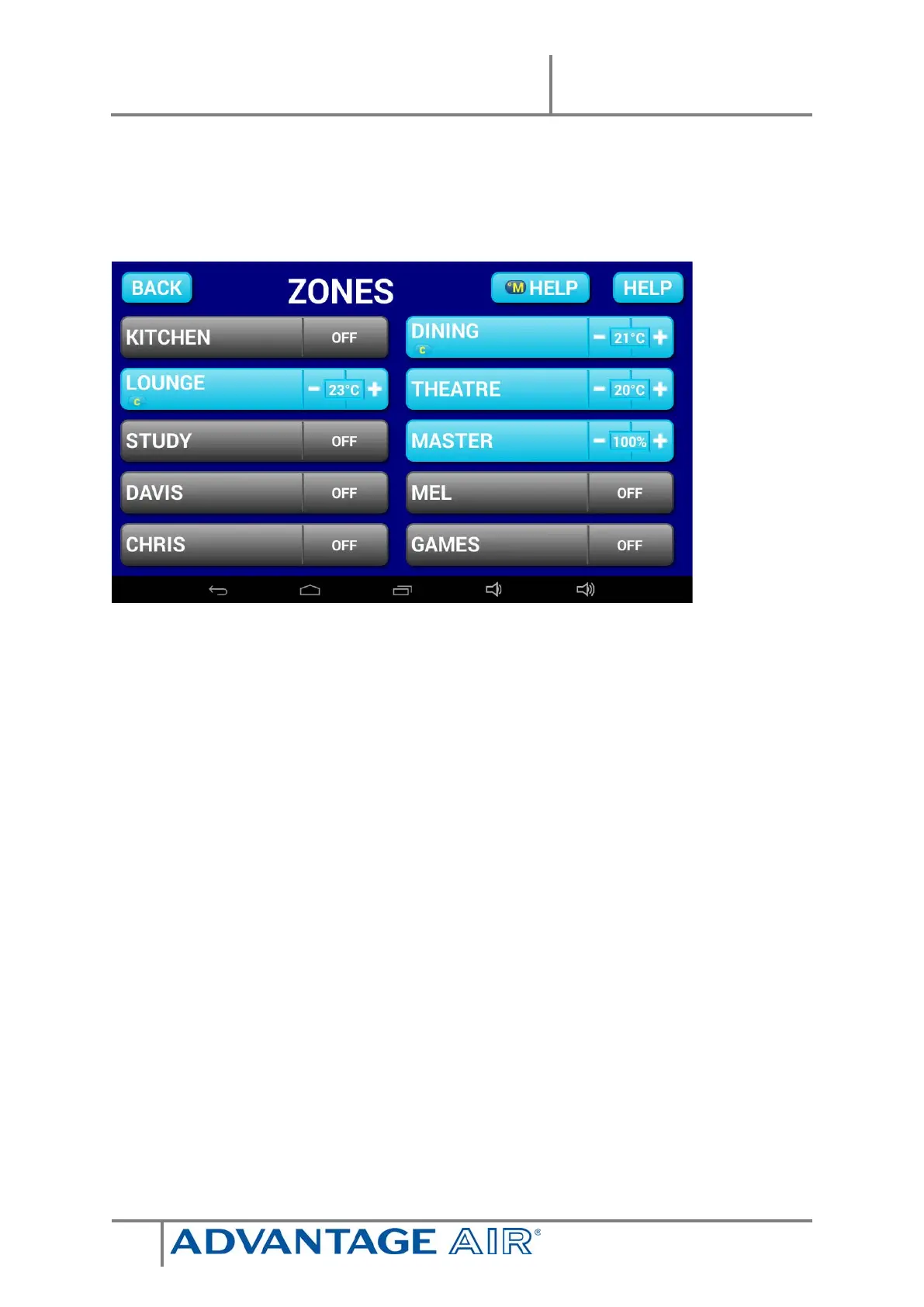 control the air in 5% increments. Use the - / + buttons when a zone is