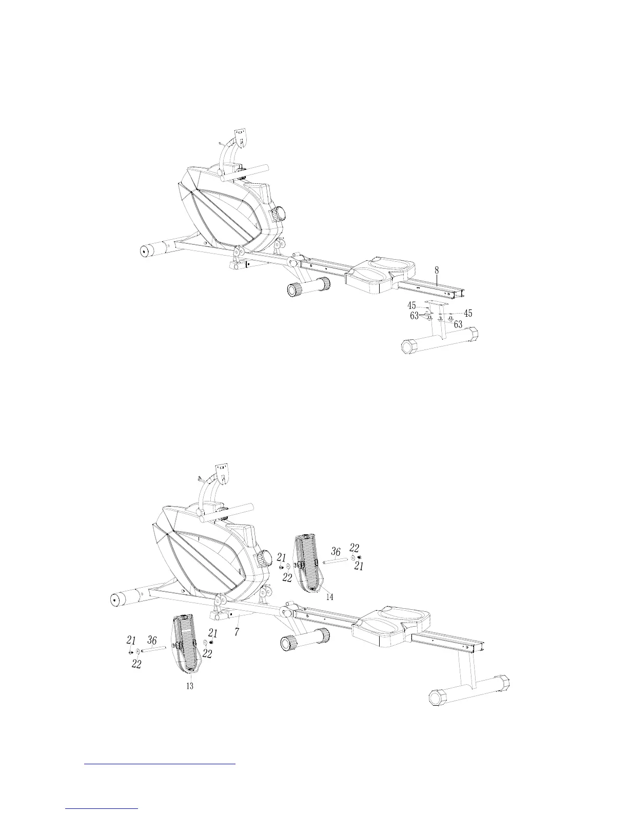 washers (45). Note: the rear stabilizer needs to tilt towards the front of the rower.