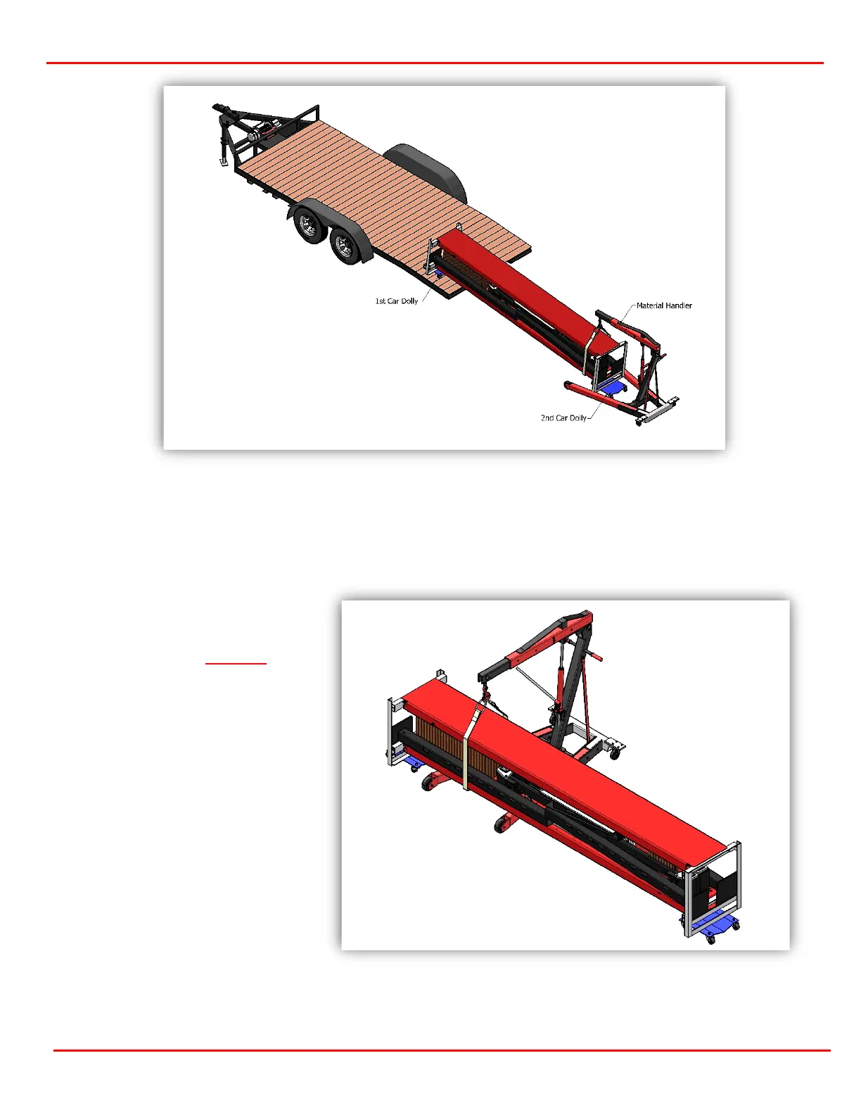 the packaged lift assembly securely resting on the car dollies. This will allow the assembly and sub-