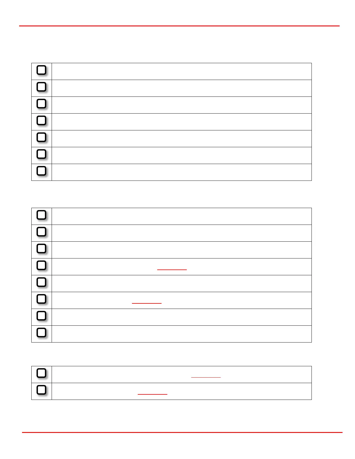Confirm all fasteners are in place and tight. (Snap rings, collars, bolts, nuts etc.)